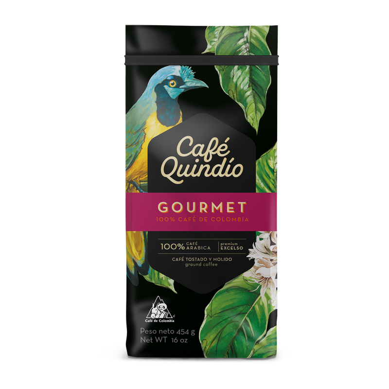 El Café Quindío Gourmet Molido es un café premium 100% colombiano, cultivado en el Eje Cafetero, caracterizado por un tueste medio que resalta notas de chocolate y panela. Ofrece un cuerpo y acidez medios, resultando en una taza suave, dulce y de aroma intenso. Ideal para un sabor balanceado.