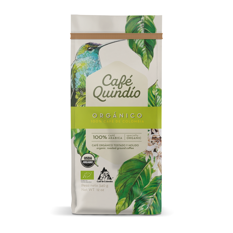El Café Quindío Orgánico Molido es un café 100% arábigo colombiano de especialidad, cultivado sin pesticidas ni fertilizantes sintéticos. Destaca por su perfil suave y equilibrado con notas a frutos rojos y aroma intenso a panela. Cuenta con certificaciones orgánicas NOP y EOS, siendo un producto sostenible y amigable con el medio ambiente.