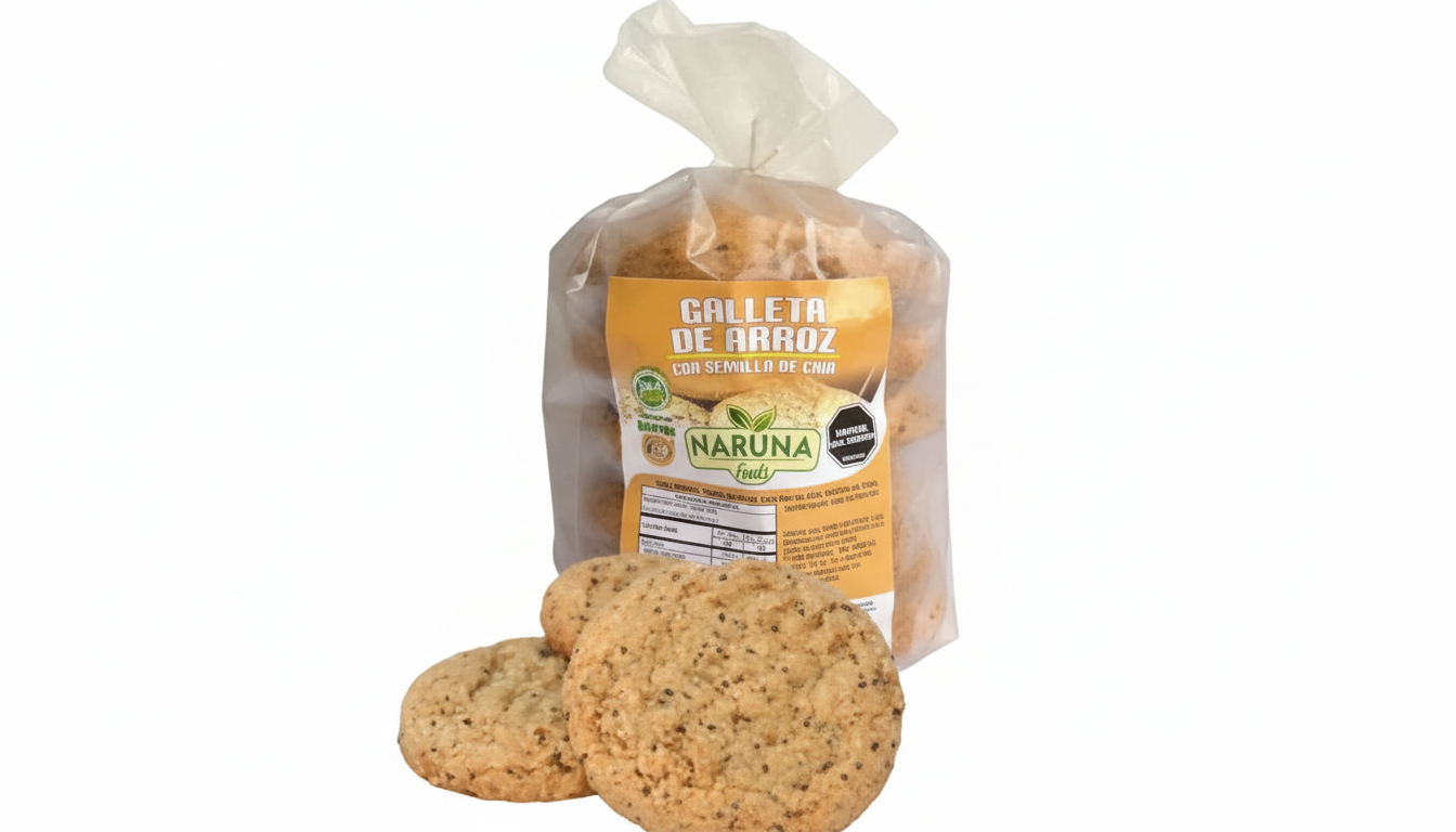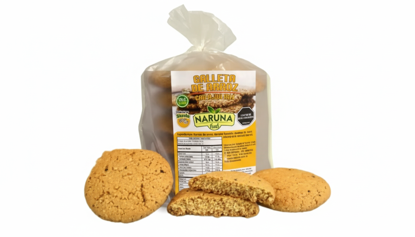 Este producto es libre de gluten y están compuestas de Harina de arroz, ajonjolí tostado, margarina vegetal, endulzado con stevia. Tienen un delicioso sabor y una textura al paladar irresistible.