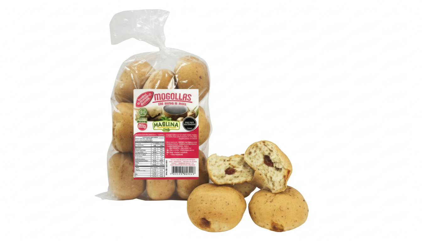 Mogollas elaboradas con, harina de Arroz, Lecitina de Soya, Arequipe con stevia podiente Ficha Tecnica, Harina de Sagu, Saccharomyces cerevisiae (Leudante) (0.5%), Stevia (Endulzante) (1.0%), Sal marina, Suavizador de miga (Emulsificante) (0.3%), Propionato de Calcio, Acido sórbico Microencapsulado