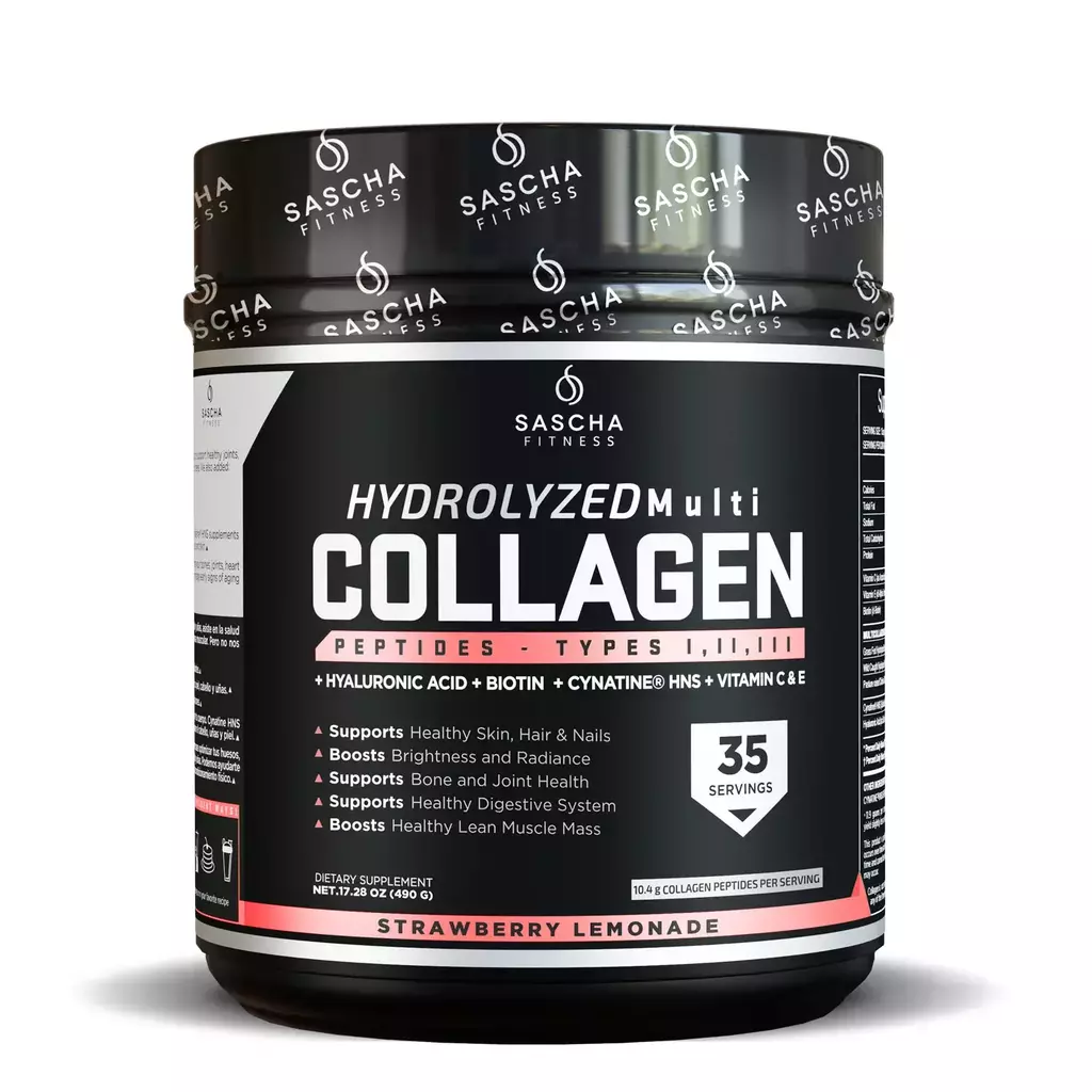 El Colágeno Limonada de Fresa de Sascha Fitness es un suplemento de colágeno hidrolizado diseñado para mejorar la salud de la piel, el cabello y las uñas. Contiene ingredientes clave como ácido hialurónico, biotina, Cynatine HNS, y vitaminas C y E, que trabajan de forma sinérgica.