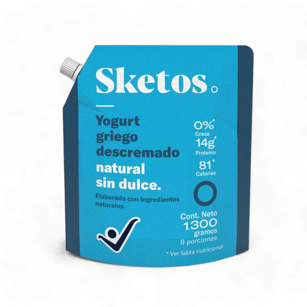 Yogurt Griego obtenido a partir de la fermentación controlada de leche descremada higienizada y cultivos lácticos. Yogurt griego Sketos es un alimento ideal para incluir en dietas bajas en grasa, sin azúcar y con un alto contenido de proteína.