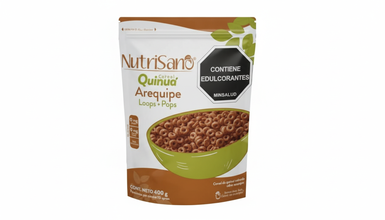 Nutrisano 400g Cereal Quinua Loops Arequipe ofreceAros de quinoa y maíz crujientes, sin gluten, con sabor a caramelo (arequipe), que ofrece una forma nutritiva, rica en proteínas y divertida de comenzar el día, perfecta con leche, yogur o como refrigerio, con edulcorantes agregados como stevia para un sabor equilibrado.