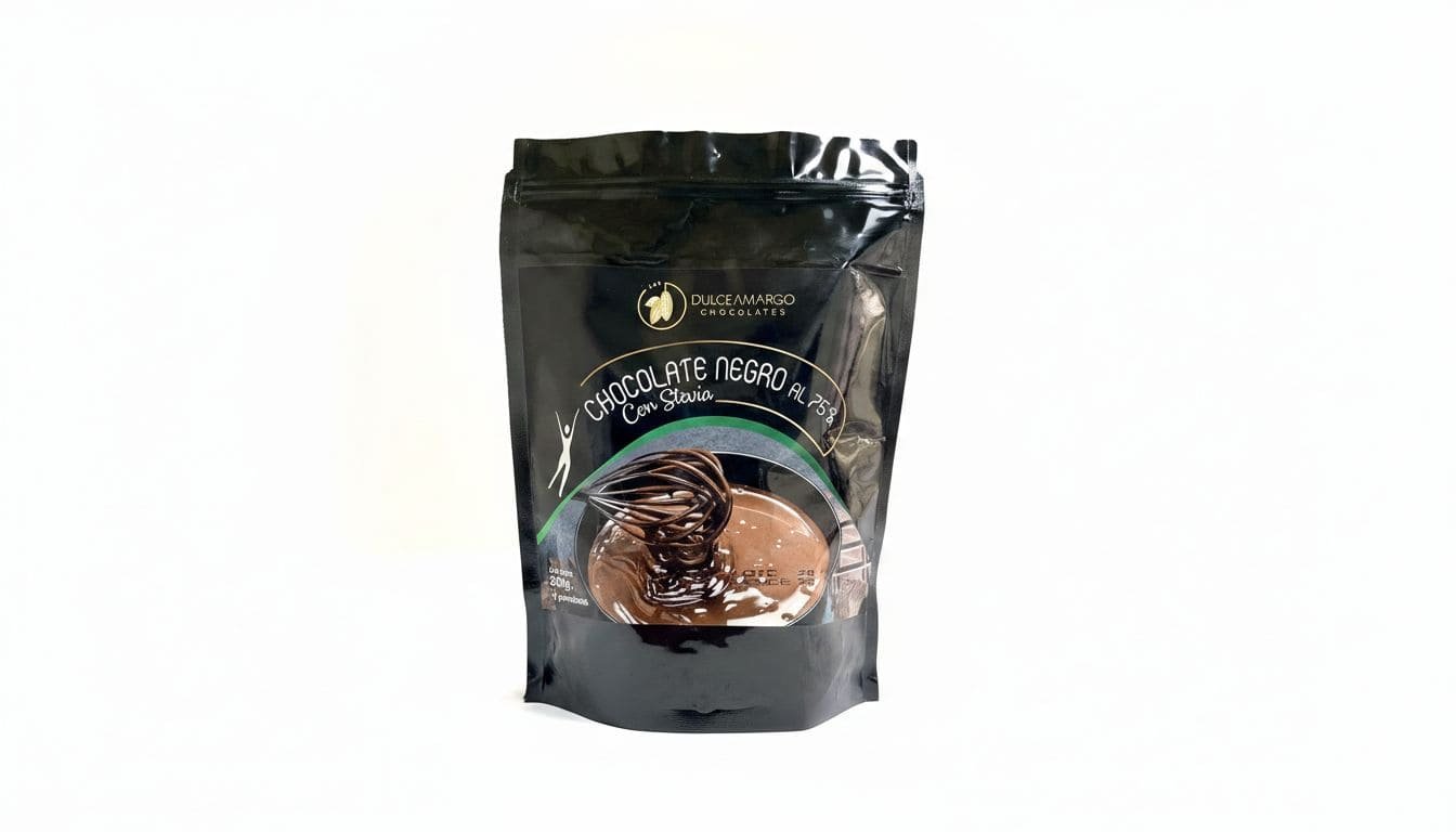 El Chocolate Negro 75% con Stevia de Dulce Amargo (500g) es un producto versátil diseñado principalmente como una cobertura de chocolate saludable para repostería o como un snack nutritivo para personas con restricciones dietéticas. Al tener un alto porcentaje de cacao y estar endulzado con stevia, funciona como un aliado para quienes buscan los beneficios del chocolate sin los efectos negativos del azúcar refinado.