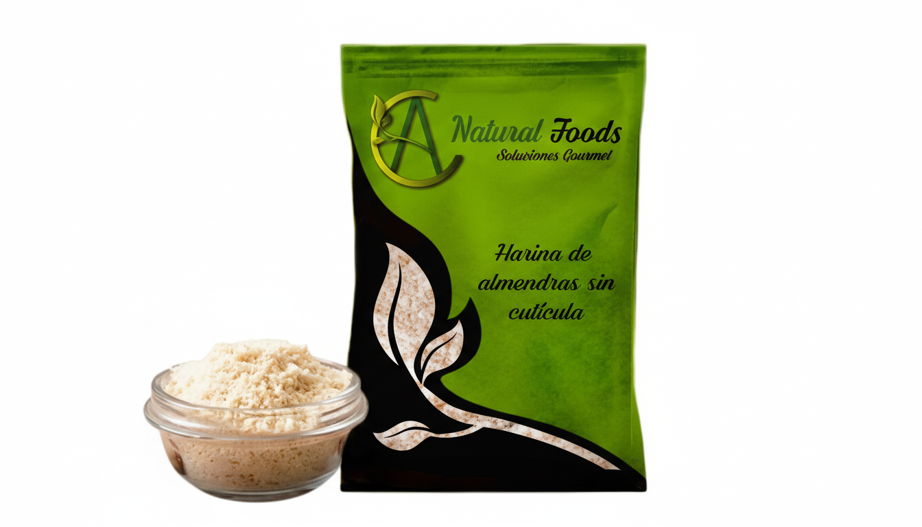 La Harina de Almendras es un producto 100% natural, obtenido al moler finamente almendras peladas, resultando en un sustituto libre de gluten, bajo en carbohidratos y rico en proteínas, fibra, grasas saludables y antioxidantes.