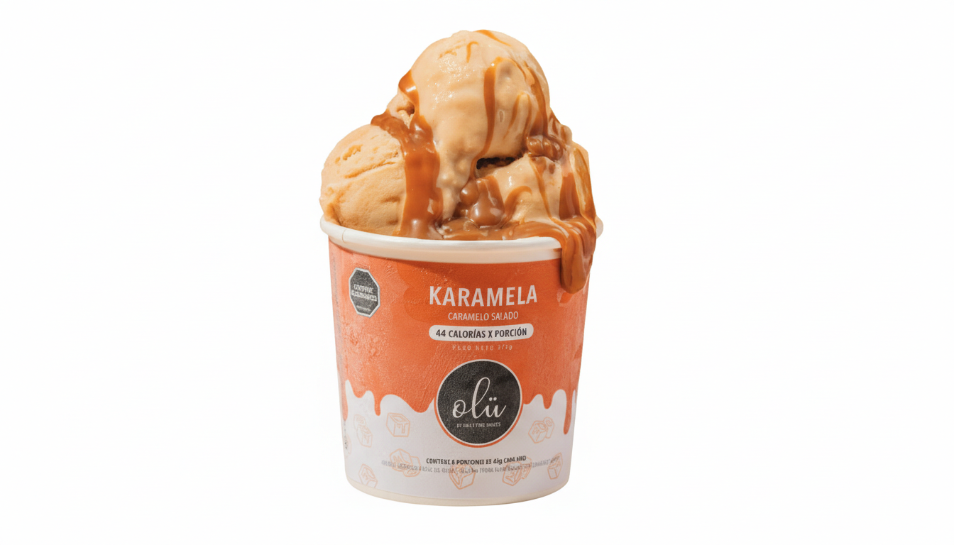 El Helado de Caramelo de Olu es una opción saludable y vegana, sin gluten ni azúcar refinada, elaborado a base de leche de almendras y endulzado con edulcorantes naturales como miel de agave, eritritol y monk fruit, ofreciendo el sabor clásico de arequipe de forma más nutritiva y apta para dietas restrictivas.