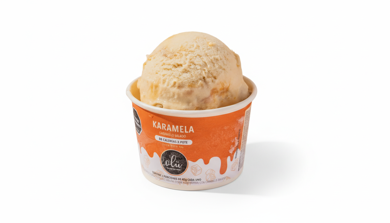 El Helado de Caramelo de Olu es una opción saludable y vegana, sin gluten ni azúcar refinada, elaborado a base de leche de almendras y endulzado con edulcorantes naturales como miel de agave, eritritol y monk fruit, ofreciendo el sabor clásico de arequipe de forma más nutritiva y apta para dietas restrictivas.