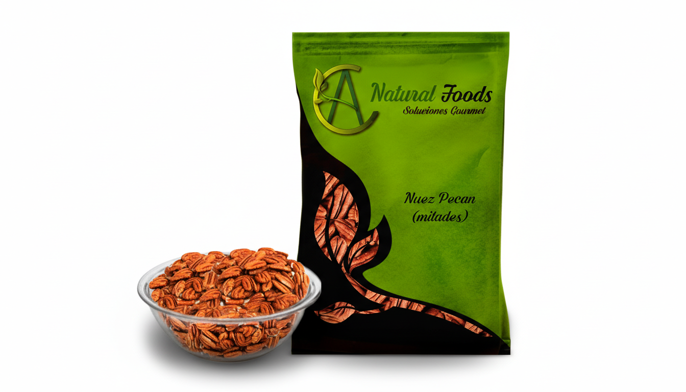 La Nuez Pecan es un fruto seco premium, pelado, sin sal ni azúcares añadidos, que ofrece un sabor suave y mantecoso con una textura crujiente, siendo una fuente de grasas saludables, fibra, antioxidantes, vitaminas y minerales.