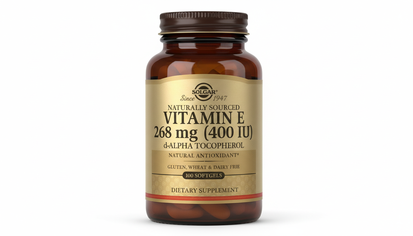Vitamina E 400 UI (268 mg) de Solgar es un suplemento antioxidante premium en cápsulas blandas, formulado con d-alfa-tocoferol natural para una alta absorción. Protege contra el daño celular, apoya la salud inmunológica y cutánea. Es libre de gluten, trigo y lácteos, apto para adultos.